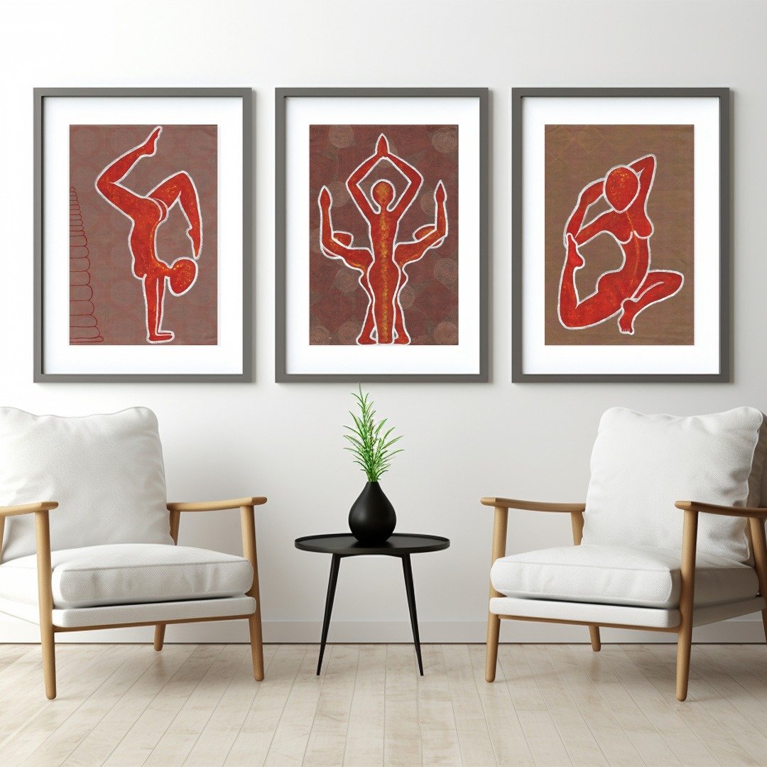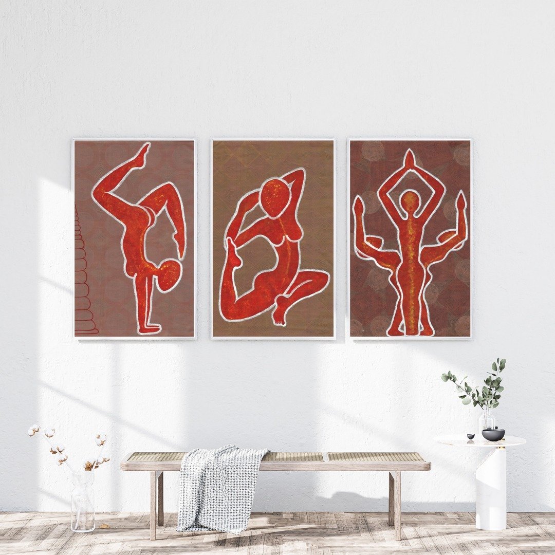 Depicting women in various yoga poses symbolizes balance, self-control, and mental peace. These paintings demonstrate that women are not only physically empowered but also maintain mental balance to cope with their inner struggles.