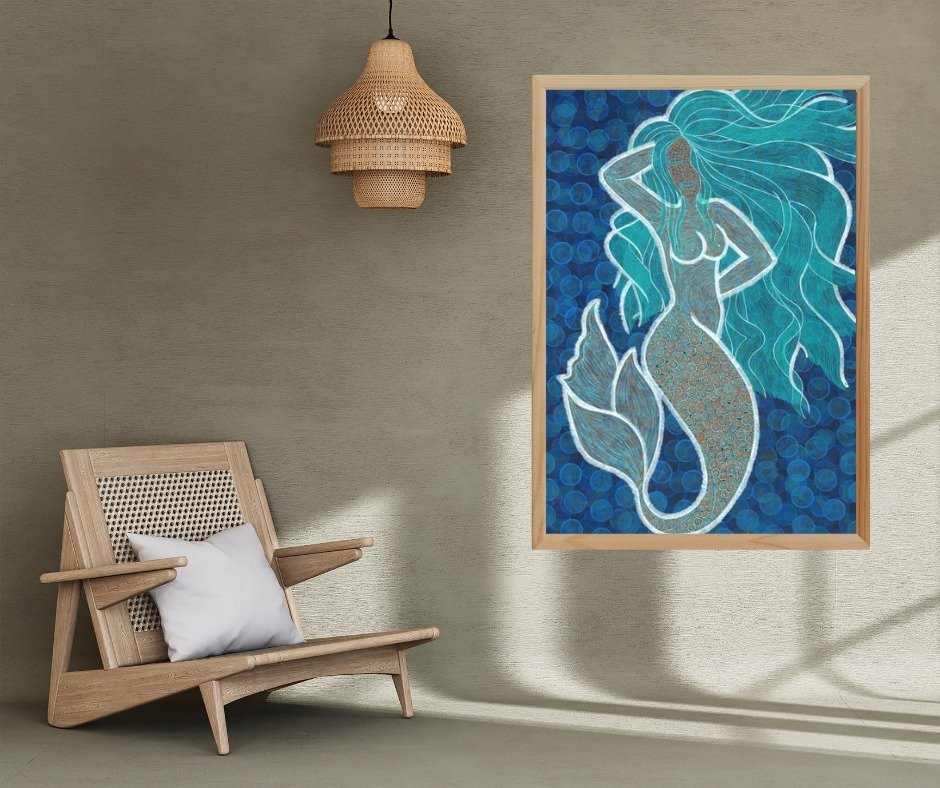 The mermaid symbolizes mystery, freedom, and the emotions hidden in the depths of the ocean. These paintings unveil the depths of a woman, her untold stories, and her unknown desires.