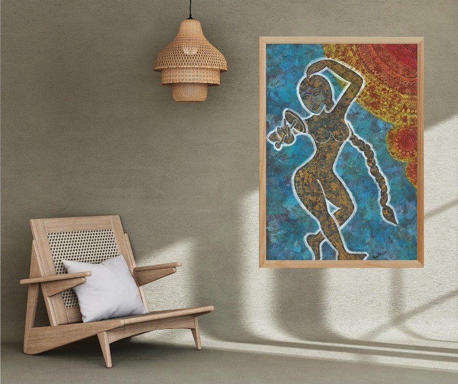 These traditional paintings depict Indian culture and the role of women within it. They illustrate that despite modernity, women remain connected to their cultural and traditional roots, which play a significant role in their identity