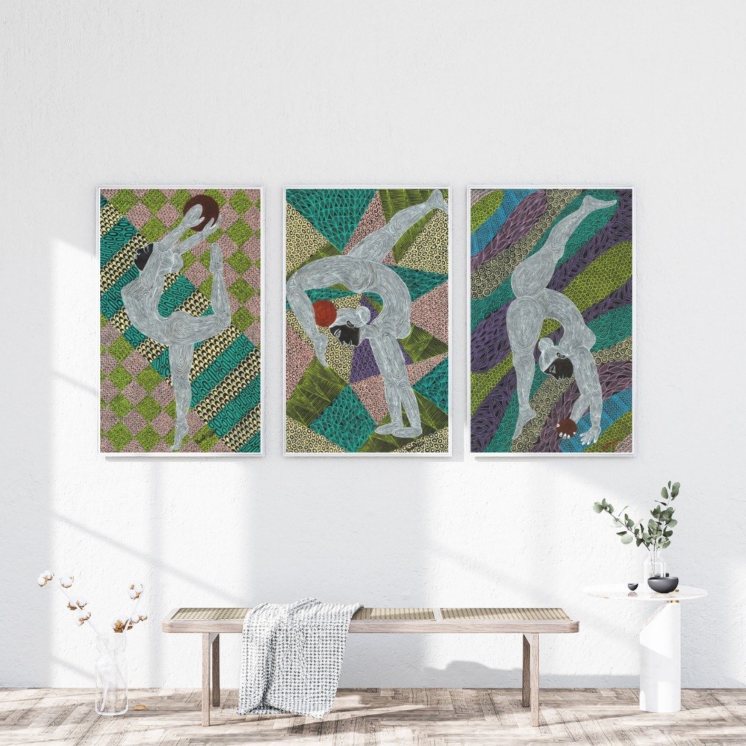 In these paintings, the woman is shown holding a ball in different positions—sometimes upside down, sometimes tilted. This illustrates the various aspects of a woman’s life, where she strives to maintain her balance in every situation. The ball symbolizes the challenges of life, and her ability to handle it in every position reflects her resilience and adaptability.